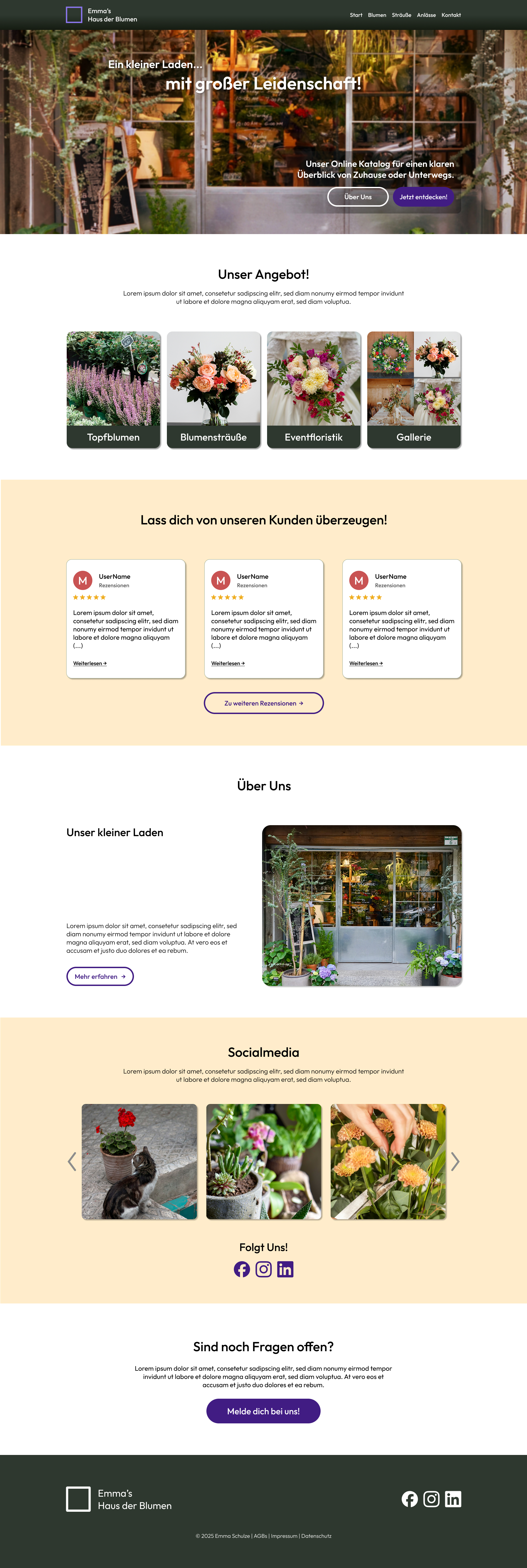 Ziel dieses Projekts war es, eine Seite für einen lokalen Blumenladen zu erstellen. Diese soll eine Übersicht zum Angebot, den Dienstleistungen und zugehörigen Preisen liefern.