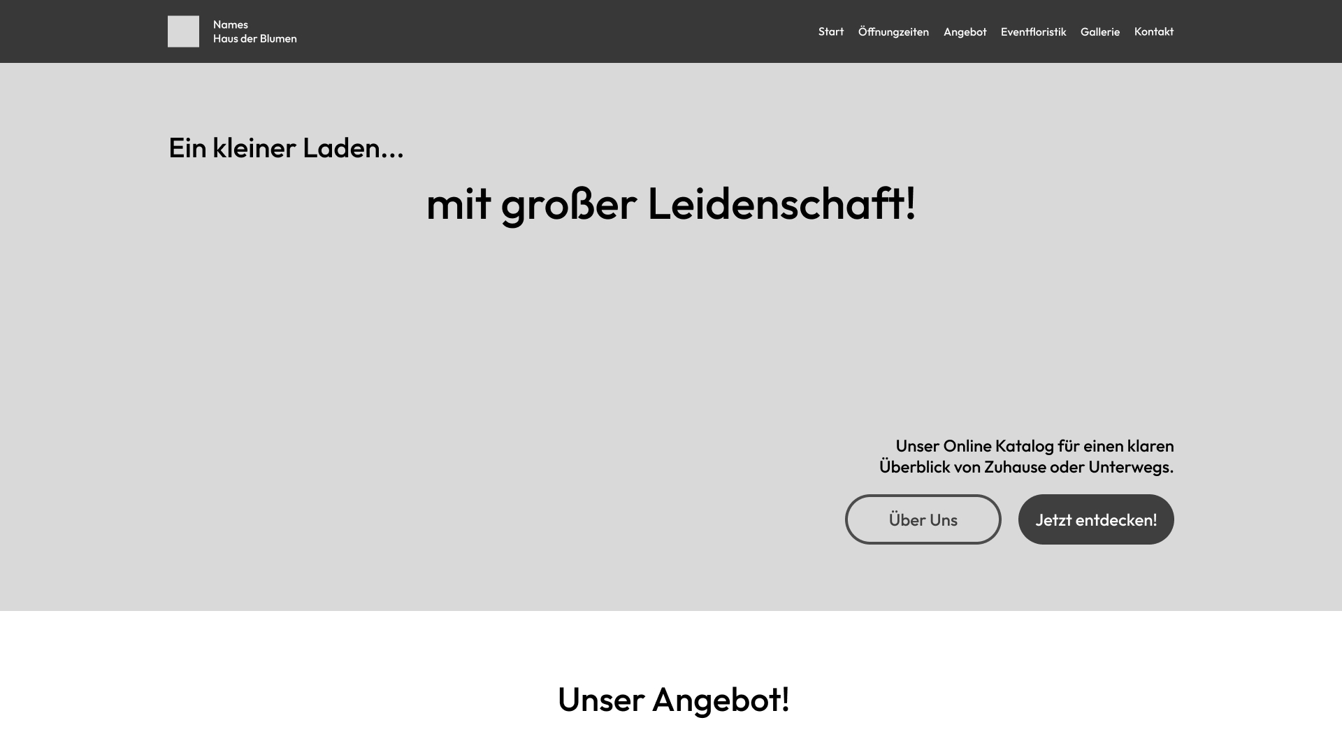 Eine Website für einen fiktiven, lokalen Blumenladen.